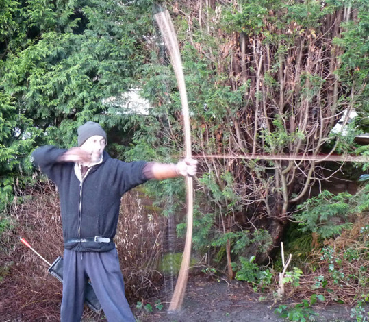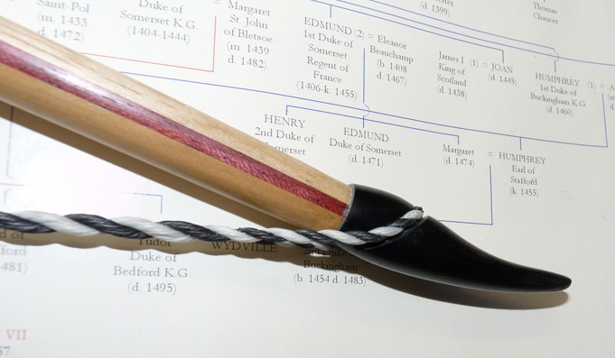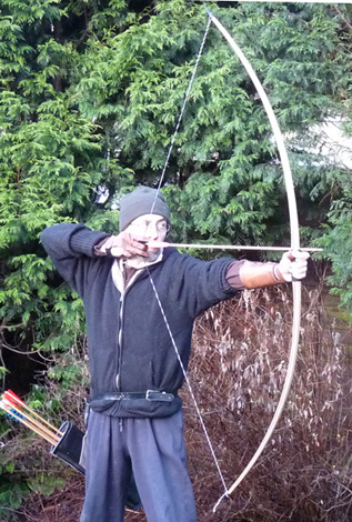 Laminated English Longbow, Hickory, Purpleheart and Lemonwood, 36lb at 28"